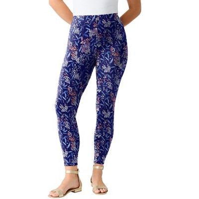 Roaman's Petite Plus Size Ankle Length Essential Stretch Legging - 6X, Dark Berry Rose Paisley