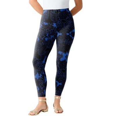 Roaman's Petite Plus Size Ankle Length Essential Stretch Legging - 6X, Purple Rose Paisley