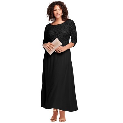 Roaman's Petite Plus Size Sparkle Lace Popover A-Line Gown With 3/4 Sleeves