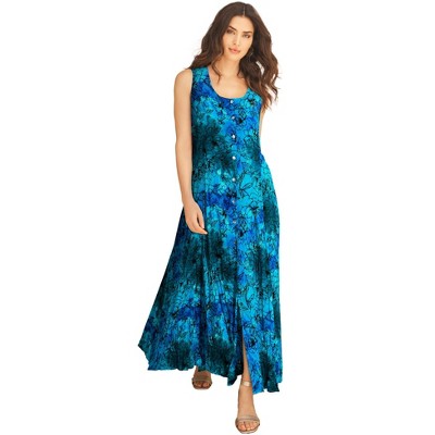 Roaman's Petite Hand-Crinkled Sleeveless Dress - 38/40, Navy Multi Garden