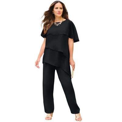 Roaman's Petite Plus Size Beaded Georgette 3-Piece Pant Set – Formal Wear - 1 of 4