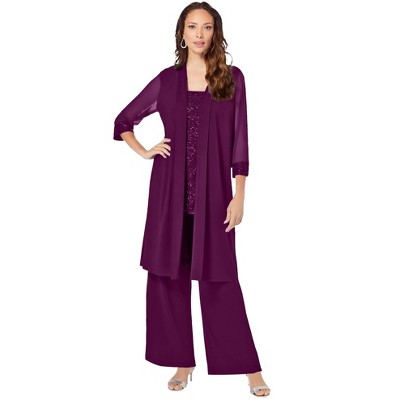 Roaman's Petite Plus Size Beaded Georgette 3-Piece Pant Set – Formal Wear