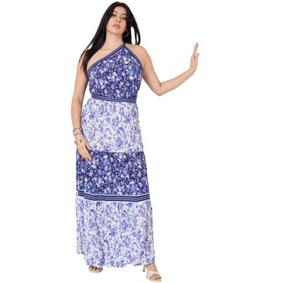 Roaman's Petite Plus Size Cold Shoulder Maxi Dress - 22/24, Blue Paisley Print