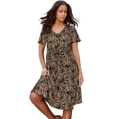 Roaman's Petite Plus Size Short Sleeve Sleeve Swing Dress - 1 of 4