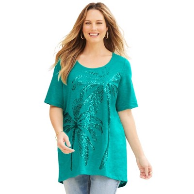 Roaman's Plus Size Soft Knit Print Tunic With Notch Neckline - 4X, Navy Palm Print