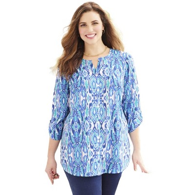 Roaman's Plus Size Soft Knit Print Tunic With Notch Neckline