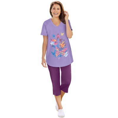 Roaman's Plus Size 2-Piece Printed Henley Top And Capri Set