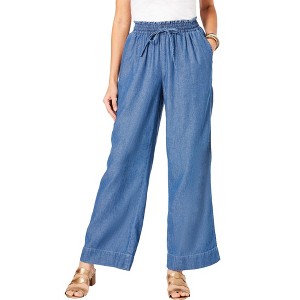 Roaman's Plus Size Pull On Wide Leg Chambray Pant - 1 of 4