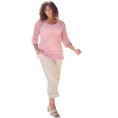 Roaman's Plus Size Scallop Trim Crochet Cardigan - 2X, Soft Blush