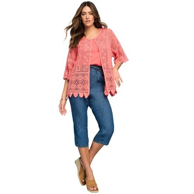 Roaman's Plus Size Scallop Trim Crochet Cardigan - 2 of 4Roaman's Plus Size Scallop Trim Crochet Cardigan - 3 of 4Roaman's Plus Size Scallop Trim Crochet Cardigan - 4 of 4