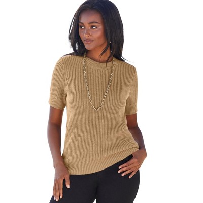 Roaman's Plus Size Cotton Ultimate Scoopneck Swing Tunic - 26/28, Soft Camel