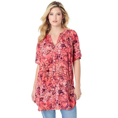 Roaman's Plus Size Angelina Tunic Top – Short Sleeve, Flowy Fit, Everyday Comfort - 1 of 4
