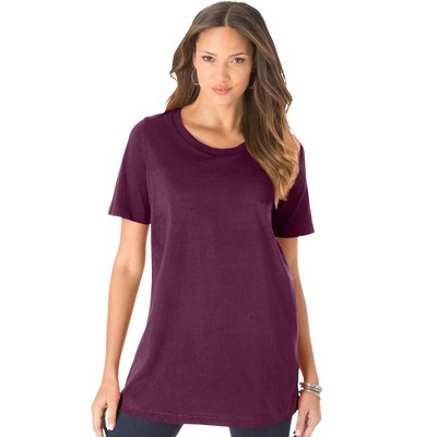Roaman's Plus Size Cotton Short Sleeve V-Neck Ultimate Tunic