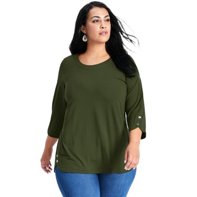 Roaman's Snap Button Boatneck Soft Knit Tunic