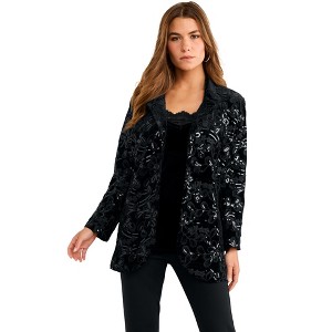 Roaman's Plus Size Sequin Embroidered Blazer - 1 of 4