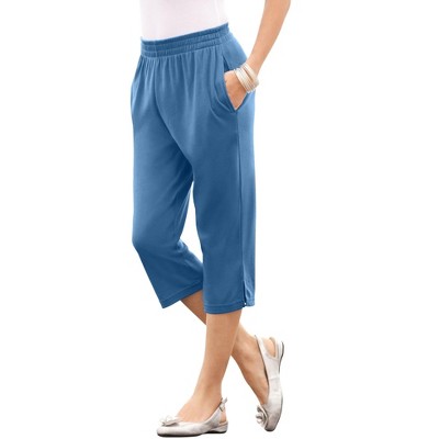 Roaman's Plus Size Straight Leg Soft Knit Pull On Pant - 2X, Dusty Indigo