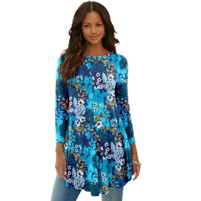 Roaman's Plus Size Ultra Drape V-Neck Swing Tunic Top - 1 of 4