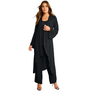 Roaman's Plus Size Beaded Georgette 3-Piece Pant Set – Formal Wear - 1 of 4