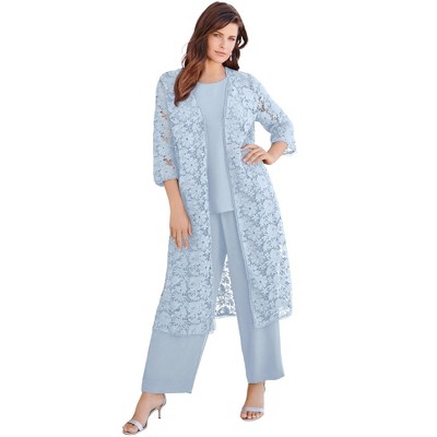 Roaman's Plus Size Beaded Georgette 3-Piece Pant Set – Formal Wear