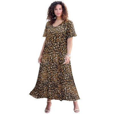 Roaman's Plus Size Stretch Knit Two-Pocket Swing Tank Dress - 22/24, Oatmeal Animal Print