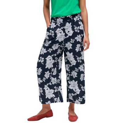 Add extra flair to your look with these cropped, wide-leg pants. This pair stands out even more with its border print on its bottom hem, so style it simply with a solid tee or tunic. A pull-on elasticized waistband lays flat and doesn't dig to keep you comfortable..