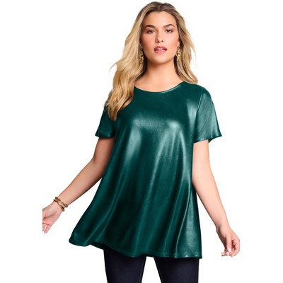 Roaman's Ultrasmooth Fabric V Neck Tee With Chain Detail - 26/28, Tropical Teal