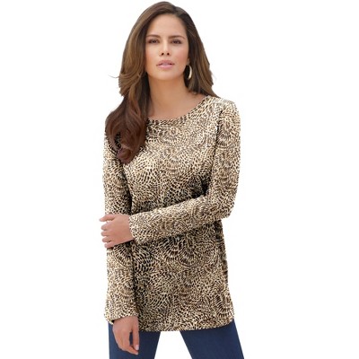 Roaman's Plus Size Cotton Ultimate V-Neck Tee - L, Cognac