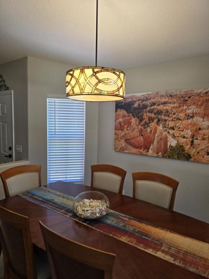 Pictures don't do it justice. Beautiful fixture with vibrant rich colors.