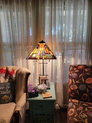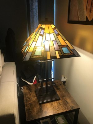 Robert Louis Tiffany Jewel Tone Mission Table Lamp 27" Tall Iron Bronze Geometric Stained Glass Art Shade for Bedroom Living Room Bedside Nightstand