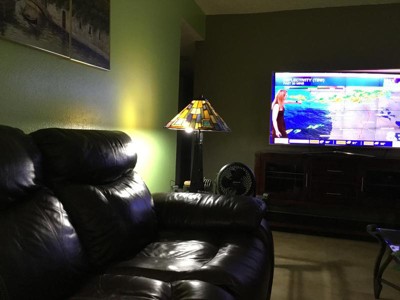 It's a beautiful table lamp, but really annoying seating in the couch and see the brightness of the bulb under the shade. It matches everything in my living room and I guess, adjustments needed for a perfect lamp.