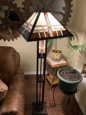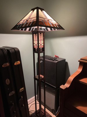 Robert Louis Tiffany Mission Rustic Floor Lamp 60 1/2" Tall Oiled Bronze with Nightlight Geometric Stained Art Glass Shade for Living Room Bedroom