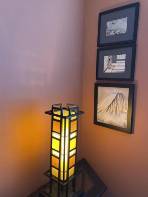 This lamp is a stunning addition to any room, offering a beautiful design that complements various decor styles. Guests appreciate its soft, warm glow, making it perfect for ambiance rather than bright lighting. While some have noted minor issues with rattling glass panes, many find it easy to assemble and well-constructed. Its artistic design and solid build make it a favorite for accent lighting in living spaces, hallways, and dining areas.