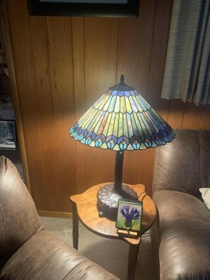 Robert Louis Tiffany Table Lamp 26" High Antique Bronze Tiffany Style Peacock Art Glass Shade for Living Room Family Bedroom Bedside Office