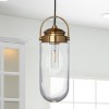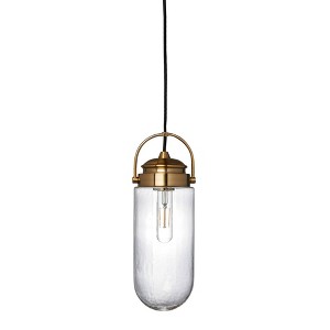 - This industrial style pendant light features an elongated glass diffuser captured in a sleek metal frame