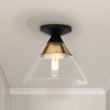 - This modern ceiling light showcases a sleek 2-tone metal frame finished with a conical clear glass shade