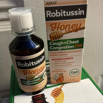 Robitussin Maximum Strength Honey Cough + Chest Congestion DM works really well for cough and chest congestion. The packaging is nice. The dextromethorphan helps stop coughing, and guaifenesin loosens mucus. The honey flavor is soothing and makes it easy to take. It really clears congestion and calms my throat. I would recommend it to adults and kids 12+. The honey flavor makes it easy to take, and it truly soothes my throat. Within a short time, I felt significant relief from both my cough and chest congestion. So good value.