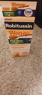 Robitussin maximum strength honey nighttime cough DM works great to suppress cough and congestion so you can rest and get a good nights sleep. It has a great honey taste!
