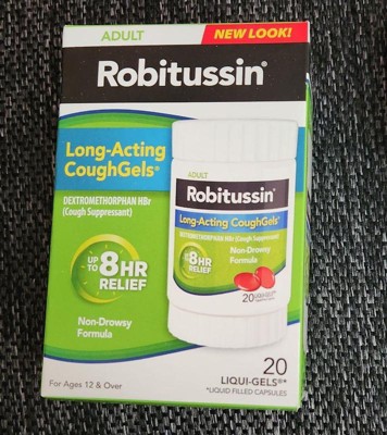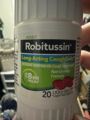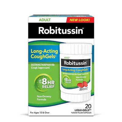 Robitussin Long-Acting Adult Cough Liqui-Gels, Extended-Release Cough Suppressant for 8-Hour Relief, 20 Count