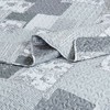 - Vintage-inspired floral patchwork design in soft bluish-grey tones for rustic charm and timeless appeal