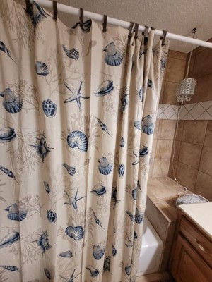 [This review was collected as part of a promotion.] Beautiful shower curtain. I love the design on this Bayside shower curtain. It goes well with many bathroom colors. It fits perfectly for a standard sized shower and has a nice feel to it as well.