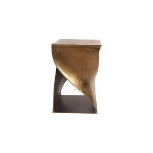 This twisted, two-tone accent table is cast in aluminum with a black, antique brass finish. Ideal as a stylish accent table, as an occasional stool, or a statement design for your botanical arrangements.
