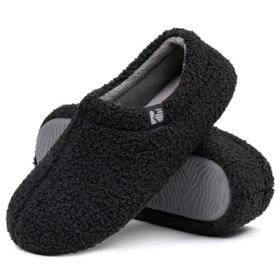 Step into these comfortable slippers after all-day walking or standing and let the memory foam footbed heal your tired feet. The slow-rebound material conforms to your foot shape to evenly distribute your weight. Made of a waffle-knit cotton-blend upper, your feet get to breathe which keeps the interior sweat-free and odorless. The rubber outsole lets you step out anytime for quick chores or work in the garden, without needing to switch shoes. All RockDove slippers are 100% vegan and machine washable. When they track dirt or stains, simply throw them in the wash and they'll come out as good as new. This is a clog style slipper. Its open-back design with a low heel collar secures your foot in place while still allowing you to easily slip them on and kick them off. If you're looking for a closed back slipper with more coverage for your feet, please check out RockDove's moccasin style slippers. Slippers are made in relaxed fit sizes, so sizing is marginally less of a concern than in regular shoes or sneakers. If you're on the upper end of a size range and have wide feet or prefer a looser fit, you may want to get the next size up. Please also keep in mind that new memory foam slippers may feel tight at first, but fit perfectly after a few hours of wear, as the temperature-sensitive foam takes time to compress.