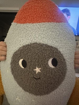 As soon as we got this my 4 year old son was so excited! He and his older bro throw it around the room and pretend it’s a rocket zooming all over. It has a little moon face on it and it’s soft. Great addition to his bed as a throw pillow and can be used to play with too.