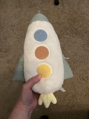 Add an astronomical vibe to your kid's space with the Figural Plush from Cloud Island™. This plush toy is designed as a rocket with colorful windows for an attractive look perfect for creating space-themed decor. This figural toy is made of 100% recycled polyester fabric and feels soft as they cuddle and play.