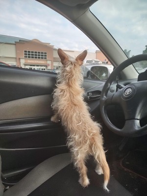 Our dog Sirius travels pretty well. We stay in pet friendly hotels, but he’s thoroughly house trained. In fact, during a recent hurricane, Sirius refused to pee on the newspapers we set out for him on the garage floor, and instead went outside in torrential rain and wind to relieve himself. So he’s not inclined to use one of these pads for his urinary issues. However, he does get quite excited during car rides, and this simple Rocket and Rex dog pad provides an easy little auto perch for him during long trips. Sirius sees this pad as his assigned car seat, and he stays a bit more relaxed, rather than dashing from lap to lap to look out the window at every nearby motorist. Might not work for every canine personality, but it’s a cost-effective solution for our little Sirius.