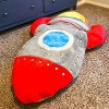 Reach for the stars with our jumbo 5-foot tall Inflatable Rocket Ship Fluffy Floor Cushion will make relaxing in their room feel out of this world. Featuring a plush, ultra-soft cover in a classic spaceship design, and a durable inflatable cushion insert made from heavy duty phthalate-free PVC. Set up is a breeze with the included heavy duty air pump that inflates the inner cushion in minutes; and the removable, washable cover makes it easy to keep your cushion clean and the colors vibrant. Each floor seat has a non-slip bottom designed to keep the cushion in place while your child rests or plays. The cloud-like pillow is lightweight enough for little hands to move from room to room, yet strong enough to stand up to all sorts of activities. No more fighting over the couch; with our floor cushions, children will have the best seat in the house! Made for kids ages 3-years and up.