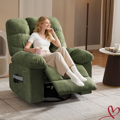 Rocking Recliner Chair with Massage and Heat, 360¡ã Swivel Oversized Recliner with Vibration Massage, Single Sofa with Side Pockets and Cup Holders