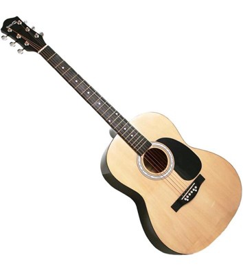 [This review was collected as part of a promotion.] This Rock Jam guitar is a great beginners set. It contained an acoustic guitar with stand and carrying case, extra string, picks, and a tuner. I selected the blue guitar but was sent the natural one instead. It's ok, it's really pretty. My teen daughter is excited to teach herself to play. It also came with a free guitar lesson from simply guitar which is an App that you can download. I would recommend this brand for a one stop shop great musical gift for a loved one.