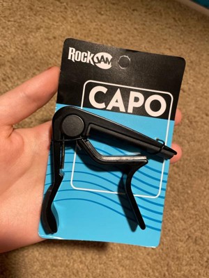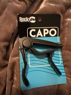 [This review was collected as part of a promotion.] This Rock Jam spring loaded guitar capo works as intended. It is easy to use, stays put once on your guitar, and effectively changes the pitch. It works well on various guitar types and seems to be a good value!