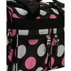 Compliment your Rockland Luggage collection with this stylish carry-on flight tote/duffle bag. This fashionable polyester fabric duffel will turn heads anywhere your travel takes you. Bag is constructed of heavy-duty 600 denier polyester. Features a U-top opening that provides easy access to main zipper secured compartment, two front zipper secured compartments and an adjustable ergonomic shoulder strap. Measures 19”L x 10.5”W x 8”H
